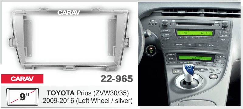—CARAV 22-965 (9 дюйм. монтажная рамка для а/м TOYOTA Prius (ZVW30/35) 2009-16 (руль слева / серебро)